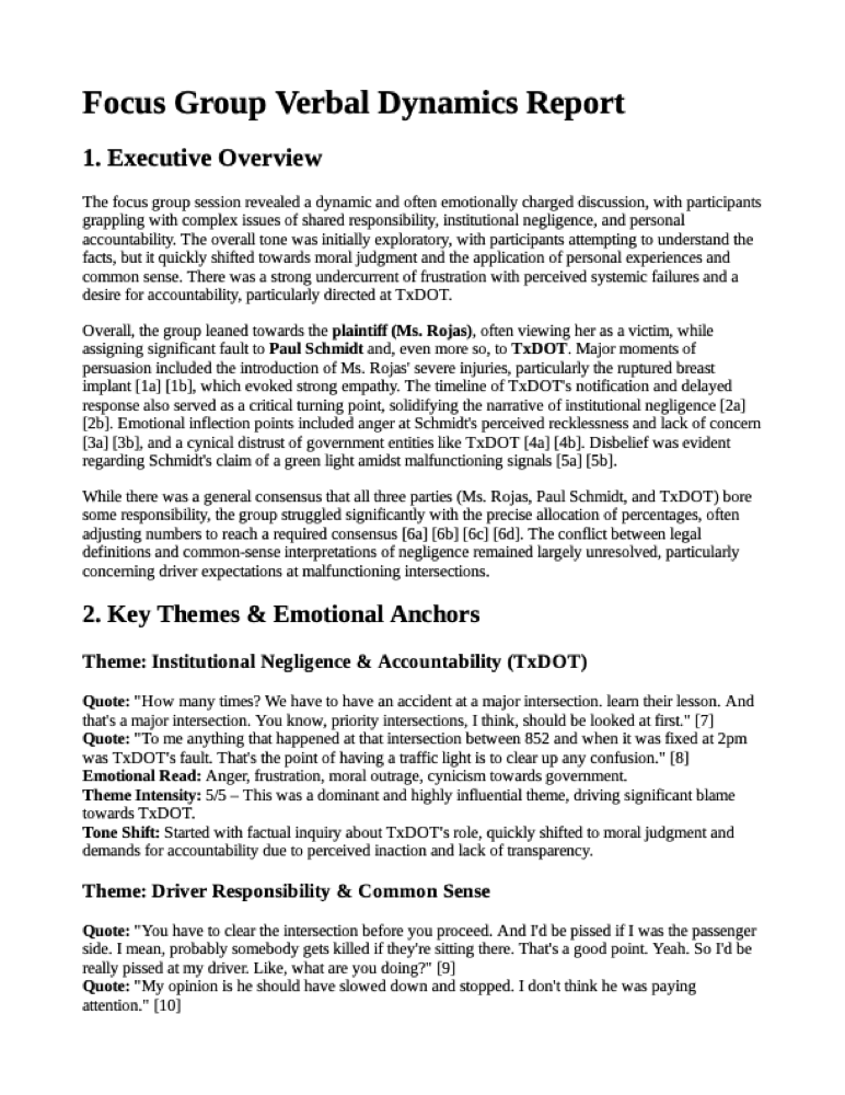 - Conducted 2 live focus groups (12 jurors each)